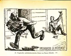 Als Plakatmaler malte er für die Bedürfnisse des autoritär geführten ungarischen Staates unter Miklós Horthy. Auch als Karikaturist verhielt er sich an den herrschenden Zeitgeist angepasst und bediente den Antisemitismus in der ungarischen Bevölkerung.[4][5]