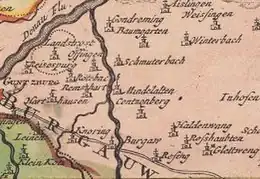 - ↑ Joseph Anton Eisenmann, Karl Friedrich Hohn: Topo-geographisch-statistisches Lexicon vom Königreiche Bayern, oder alphabetische Beschreibung aller im Königreiche Bayern enthaltenen Kreise, Städte, Märkte, Dörfer, Weiler, Höfe, Schlösser, Einöden, Gebirge, vorzüglichen Berge und Waldungen, Gewässer usw:. Hrsg.: Johann Jacob Palm und Ernst Enke. Band 1: A–L. Johann Jacob Palm und Ernst Enke, 1831, S. 45 (books.google.de).