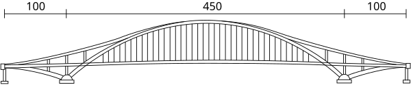 Das Bauwerk ist einschließlich der Zufahrtsrampen 1250 m lang. Die 650 m lange Stahlbrücke hat zwei Bögen aus geschweißten Hohlkästen mit einer Stützweite von 450 m. Die Bögen sind gegenüber der Vertikalen zueinander geneigt, so dass ihr Abstand am Scheitel wesentlich kleiner ist als an den Widerlagern. Die Bögen sind durch neun ebenfalls als Hohlkästen ausgeführte Querbalken verbunden und versteift. Der als Zugband ausgebildete, über die ganze Länge von 650 m reichende und 45,80 m breite Fahrbahnträger ist an den Bögen mit Drahtseilen aufgehängt.[1]