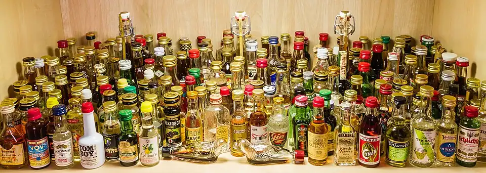 Miniatur, auch Miniaturflasche oder Portionsflasche,[1] bezeichnet im Spirituosenhandel eine kleine Flasche mit zwei bis fünf Zentiliter (20 bis 50 Milliliter) Obstbrand, Getreidebrand, Likör oder einem anderen hochprozentigen alkoholischen Getränk.