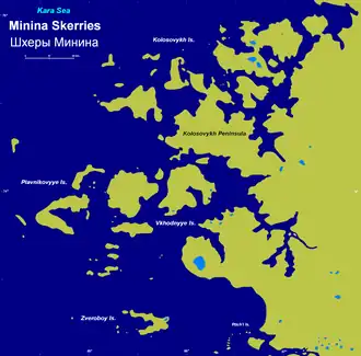 Die wichtigsten zu den Minin-Schären gehörenden Inselgruppen und Inseln sind:[3]