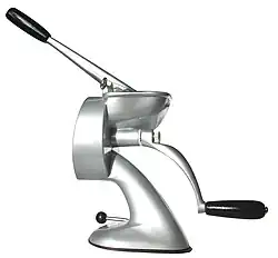 Durch die Wahl der passenden Messerscheibe sowie durch Drehgeschwindigkeit und Anpressdruck des Hebels kann das Arbeitsergebnis – die Feinheit und Konsistenz des zerkleinerten Schneidguts – weitgehend beeinflusst werden. Das Modell M3 verfügt zusätzlich über einen Metall-Einsatz und einen auswechselbaren zweiten Andruckhebel für das Entsaften von vorgeschnittenem Obst und Gemüse.[1]