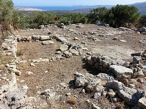 - ↑ Sabine Westerburg-Eberl: „Minoische Villen“ in der Neupalastzeit auf Kreta. In: Harald Siebenmorgen (Hrsg.): Im Labyrinth des Minos: Kreta – die erste europäische Hochkultur [Ausstellung des Badischen Landesmuseums, 27.1. bis 29.4.2001, Karlsruhe, Schloss]. Biering & Brinkmann, München 2000, ISBN 3-930609-26-6, S. 87 (uni-heidelberg.de [PDF; 1,6 MB]).