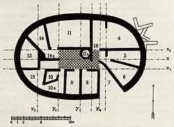 - ↑ a b c Valeria Lenuzza: „The Whole is a Freak“: A Reassessment of the Spatial Organization of the Oval House at Chamaizi, Siteia. In: Kevin T. Glowacki, Natalia Vogeikoff-Brogan (Hrsg.): Stega: The Archaeology of Houses and Households in Ancient Crete (= Hesperia Supplements. Nr. 44). The American School of Classical Studies at Athens, Princeton 2011, S. 60 (englisch, Digitalisat [abgerufen am 18. Januar 2017]).