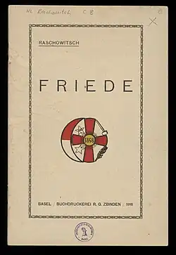 - ↑ Mirko Raschowitsch: Friede, R. G. Zbinden, Basel 1916.
