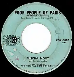 - 1961 – Fascination / Poor People of Paris, CGX-5007