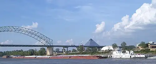 Der Mississippi ist ein wichtiger Transportweg. Auf dem Fluss verkehren heute Schubverbände, von denen einige zu den weltweit größten zählen[25] Normal sind Schubverbände mit 40 Leichtern. Auf dem gestauten oberen Abschnitt des Mississippi sind nur noch 15 Leichter erlaubt. Die Schubleichter auf dem Mississippi haben eine Tragfähigkeit von jeweils 1500 Tonnen, so dass die größten Schubverbände auf eine Tragkraft von über 100.000 Tonnen kommen.