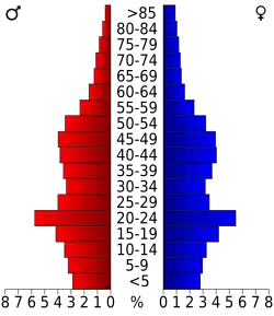 Auf das gesamte County bezogen setzte sich die Bevölkerung zusammen aus 22,90 % Einwohnern unter 18 Jahren, 15,40 % zwischen 18 und 24 Jahren, 29,20 % zwischen 25 und 44 Jahren, 22,60 % zwischen 45 und 64 Jahren und 10,00 % waren 65 Jahre alt oder darüber. Das Durchschnittsalter betrug 33 Jahre. Auf 100 weibliche Personen kamen 99,90 männliche Personen, auf 100 Frauen im Alter ab 18 Jahren kamen statistisch 98,00 Männer.