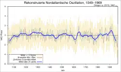 - ↑ a b Pablo Ortega u. a.: A model-tested North Atlantic Oscillation reconstruction for the past millennium. In: Nature. 2015, doi:10.1038/nature14518.