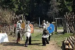 Darstellung beim Frühlingsfest 2014: Ritter verteidigen den hinteren Dorfeingang