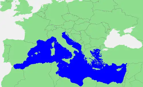 | Wichtige Inseln | Sizilien, Sardinien, Zypern, Korsika, Kreta, Euböa, Mallorca, Lesbos, Rhodos, Korfu, Djerba, Malta, zuzüglich mindestens 4300 kleinerer und Kleinstinseln |