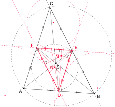 Das Ausgangsdreieck und das Mittendreieck sind orthologische Dreiecke.[2]