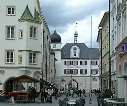 Das Mittertor ist das einzige erhaltene von ehemals fünf Stadttoren in Rosenheim.