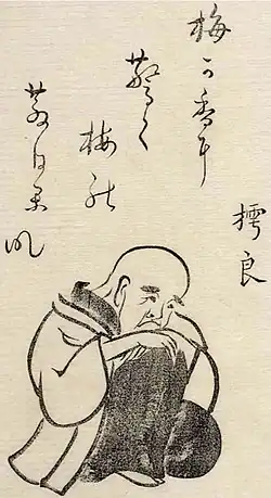 - ↑ 梅が香に 驚で梅 の散日かな (Ume ga ka ni - odorokite ume – no chihi ka na) – Inhalt deutsch: Der Duft der Pflaume, Pflaume beeindruckend, beim Spaziergang.