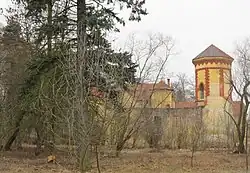 - Aussichtsturm Vochlice, er wurde 1881 oder 1883 am Hachtenhübel auf dem höchsten Punkt des sich südlich an den Schlosspark anschließenden Waldstreifens errichtet und war vom Park mit Promenadenwegen verbunden.