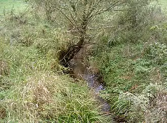 Der Mlýnský potok entspringt aus einigen Weihern am Südrand von Nová Ves pod Přimdou (deutsch: Neudorf).[4][5] Das Dorf Nová Ves und die Quellen des Mlýnský potok befinden sich am Westhang des 698 m hohen Planina.
