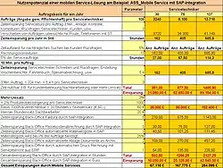 Eine realistische Kalkulation anhand kaufmännischer Kennzahlen zeigt, welche Kosten in unterschiedlich großen Unternehmen mit entsprechend vielen Servicetechnikern für manuell abgewickelte Einsätze im Vergleich zu elektronisch basierten Arbeitsabläufen entstehen (s. Abbildung 4).