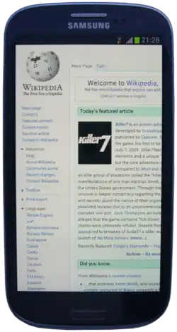 Viele Mobiltelefone, die vor dem Populärwerden von Smartphones auf dem Markt kamen, besitzen einen Browser zum Surfen auf WAP- und Mobile-HTML-Seiten. Ein erstes WAP-fähiges Handy wurde bereits 1999 veröffentlicht.[62] Die WAP-Technik ist mittlerweile obsolet und wurde von der Möglichkeit verdrängt, das herkömmliche Internet auf dem Handy zu nutzen. Steve Jobs kritisierte bei der Präsentation des iPhone die WAP-Technik als „Baby-Internet“ und stellte den Internet-Browser Mobile Safari als „ersten echten Internet-Browser auf einem Smartphone“ dar.[63] Moderne Smartphones haben meist einen mitgelieferten Browser, mit dem sich HTML-Seiten relativ komfortabel betrachten lassen können. Alternativ lassen sich auf Smartphones auch Browser von Drittanbietern wie Opera Mini nachinstallieren.