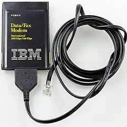 Der oder das Modem (Kofferwort aus Modulator und Demodulator)[1] ist ein Kommunikationsgerät, um digitale Signale über weite Übertragungswege zwischen zwei digitalen Endgeräten auszutauschen. Vom sendenden Modem wird ein digitales Signal auf eine Trägerfrequenz im Hochfrequenzbereich aufmoduliert, vom empfangenden Modem wird daraus die ursprüngliche Information durch Demodulieren zurückgewonnen. Dabei arbeiten Modems des neueren Standards DSL mit höheren Trägerfrequenzen und größeren Bandbreiten auf der Telefonleitung als die Modelle nach dem älteren „Schmalband“-Standard. Der Begriff Modem war in den 1970er bis 1990er Jahren präsenter als später, weil die Benutzung eines Modems damals synonym mit online gehen war, also damit, seinen Computer mit anderen zu vernetzen.