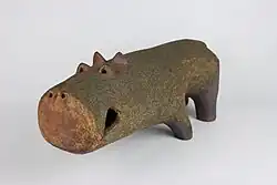 Die als Einzelstücke in einem Atelier entstandene Keramik, im englischsprachigen Bereich hierfür auch zusammenfassend studio pottery (Studio-Töpferei),[1] kommt erst gegen Ende des 19. Jahrhunderts durch den Einfluss vor allem ostasiatischer (chinesischer und japanischer) Keramik und in der Aufbruchsstimmung des Jugendstils zur Geltung. Vor allem die japanische Gefäßkeramik in ihrer freieren und abstrahierenden Formgebung, ihrem unkonventionellen Umgang mit dem Material Ton und den experimentellen Möglichkeiten der Glasurgestaltung (vgl. Abb. 1) inspirierten die Pioniere der modernen Kunstkeramik. Die Keramikerdynastie Massier im französischen Vallauris, wo heute noch eine Biennale für zeitgenössische Keramikkunst stattfindet, hatte daran erheblichen Anteil. Auch Pablo Picasso verbrachte einige Jahre seines Künstlerlebens (1948–1955) in Vallauris und schuf dort bedeutende Keramikskulpturen. In England war Bernard Leach – auch unter dem Einfluss japanischer Volkskunstkeramik – stilbildender Vorreiter (s. Abb. 2).
