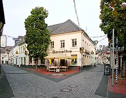 Ehemaliges Brauhaus, heutiges Cafe in der Moerser Fußgängerzone