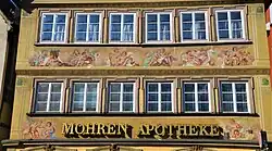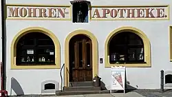 In Deutschland gibt bzw. gab es Apotheken, die nach einem – oder mehreren – Mohren benannt sind, in fast 100 Orten.[4] Mohrenapotheken finden und fanden sich in fast jeder größeren deutschen Stadt in Mittel- und Süddeutschland, wohingegen sie in Norddeutschland sehr selten sind. Auch in der Schweiz sind Mohrenapotheken selten, sind jedoch im östlichen Österreich häufiger zu finden.[5] Im heutigen Polen befinden und befanden sich ebenfalls Mohren-Apotheken (pl. apteka „Pod Murzynem”) in mehreren Städten Schlesiens, etwa in Breslau, Brieg, Glatz, Dzierżoniów oder Gleiwitz. Auch in Luxemburg gab es bis zum Jahr 2007 eine „Mouerenapdikt“.[6] In Italien tragen die Mohrenapotheken unterschiedliche Namen, etwa „farmacia dei mori“ oder „Farmacia all'insegna del moro“, in den Niederlanden hießen sie zumeist „Apotheek de Moriaan“. In Deutschland gibt es zudem die artverwandte Gruppe der „Mohrendrogerien“ sowie „Mauritius-Apotheken“ (etwa in Krefeld, Berlin, Jüterbog oder Meerbusch).