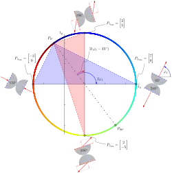 Die Komponenten in der uv-Ebene auf der linken Seite können mit den Doppelwinkelfunktionen dargestellt werden:[5]:35f
