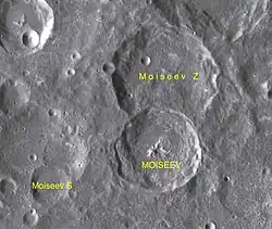 - ↑ D. H. Menzel, M. Minnaert, B. Levin, A. Dollfus, B. Bell: Report on Lunar Nomenclature by The Working Group of Commission 17 of the IAU. In: Space Science Reviews. Band 12, Nr. 2, 1970, S. 136–186, Moiseev auf Seite 162, doi:10.1007/BF00171763, bibcode:1971SSRv...12..136M (englisch).