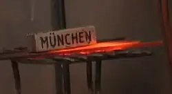 Bei Erhitzung im Mujodogane-Block erscheinender Schriftzug "München"