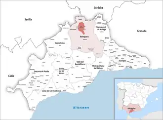Der Ort gehört zum Einzugsgebiet von Antequera im Norden der Provinz. Er grenzt an Alameda, Antequera und Humilladero.