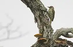 Der Mombasaspecht bewohnt küstennahe Wälder und Waldland.