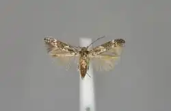 - ↑ a b c d e J. C. Koster, S. Yu. Sinev: Momphidae, Batrachedridae, Stathmopodidae, Agonoxenidae, Cosmopterigidae, Chrysopeleiidae. In: P. Huemer, O. Karsholt, L. Lyneborg (Hrsg.): Microlepidoptera of Europe. 1. Auflage. Band 5. Apollo Books, Stenstrup 2003, ISBN 87-88757-66-8, S. 36 (englisch).
