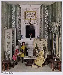 - ↑ a b c d e Renate Müller-Krumbach: Puppenhäuser im 18. Jahrhundert. In: Renate Müller-Krumbach, Hannelore Henze: Kleine heile Welt. Eine Kulturgeschichte der Puppenstube. Edition Leipzig, 1992, S. 30.