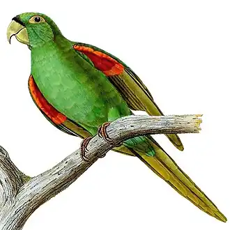- ↑ a b Olson, S. L. (2015). History, morphology, and fossil record of the extinct Puerto Rican Parakeet Psittacara maugei Souancé. Wilson J Ornithol 127(1): 1–12.