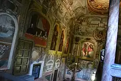 Die Ausschmückung des großen Treppenhauses mit Wandmalereien und Ölgemälden auf Leinwand stammt aus verschiedenen Epochen. Im zweiten Stock ist ein königlicher Balkon zu sehen, von dem Philipp IV., seine zweite Gemahlin Maria Anna von Österreich, Infantin Maria und Prinz Felipe Prospero herabschauen, was darauf hindeutet, dass dieses Detail vor 1661 gemalt worden sein muss, dem Todesdatum des Prinzen. Das Gemälde vom Kalvarienberg auf dem ersten Treppenabsatz wird Antonio Pereda zugeschrieben und dürfte etwa aus der gleichen Zeit stammen.