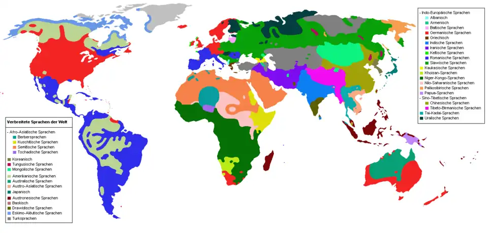 | Mongolisch | 5 bis 6 Mio. | Mongolei (davon 2,5 bis 3 Mio. Chalcha-Dialekt), China (Innere Mongolei) |