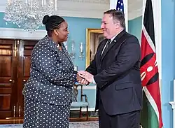 - ↑ MFA CS Monica Juma switches docket with Defence counterpart Raychelle Omamo. In: co.ke. Capital News, 2020, abgerufen am 18. Januar 2020 (amerikanisches Englisch).