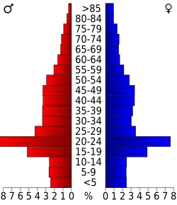 Auf das gesamte County bezogen setzte sich die Bevölkerung zusammen aus 18,2 Prozent Einwohnern unter 18 Jahren, 23,4 Prozent zwischen 18 und 24 Jahren, 27,7 Prozent zwischen 25 und 44 Jahren, 20,0 Prozent zwischen 45 und 64 Jahren und 10,7 Prozent waren 65 Jahre alt oder darüber. Das Durchschnittsalter betrug 30 Jahre. Auf 100 weibliche Personen kamen 101,8 männliche Personen. Auf 100 Frauen im Alter von 18 Jahren oder darüber kamen statistisch 101,2 Männer.