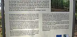 „Die Wallanlage entstand vermutlich zum Schutz der einstigen Siedler. Im Frühmittelalter sollen die tiefen Gräben und Holzpalisaden die bäuerliche Siedlung vor Überfällen durch ungarische Reiterhorden geschützt haben. ... Was sich innerhalb des Ringwalls befand, lässt sich nur erahnen und könnte anhand einer Grabung erforscht werden. ... Nach der Zerstörung der Anlage entschied sich die regierende Familie ‚von Luneberg‘ gegen einen Wiederaufbau.[2] Stattdessen wurde eine neue Burg in Altluneberg errichtet.“