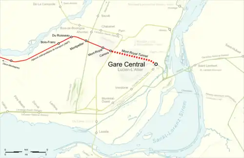 ![]() Mont-Royal-Tunnel und Strecke nach Deux-Montagnes in Rot