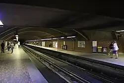 Die von Victor Prus entworfene Station entstand als Tunnelbahnhof und ist relativ nüchtern gestaltet. Von der brückenartig konstruierten Verteilerebene aus führt eine Rolltreppe zum einzigen Ausgang. Dieser befindet sich an der Oberfläche in einem Pavillon aus Stahl und Beton. Die Wände sind mit braunen Ziegeln in verschiedenen Schattierungen verkleidet. Durchbrochen wird dieses Muster von 32 „Nähten“ aus eingegossenem Aluminium, aus denen würfel- und barrenförmige Elemente hervorragen. Ein Konstruktionsfehler ist die fehlende Entlüftung, sodass die von einfahrenden Zügen erzeugte Druckluftströmung überdurchschnittlich heftig ist.