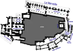 Die Baugeschichte der Abtei und die zeitliche und räumliche Zuordnung der Bauteile ist äußerst komplex (Claude Quétel spricht von einem „verschachtelten Baukonglomerat“).