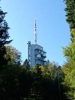 Auf dem Gipfel des Mont Pèlerin steht der 122 Meter hohe Fernsehturm Mont Pèlerin der Swisscom. Ein Lift führt auf eine Aussichtsplattform in einer Höhe von rund 65 Meter über dem Erdboden, von der sich bei klarem Wetter ein grossartiges Panorama auf den Genfersee, die Alpen und über das Mittelland bis zum Jura bietet.