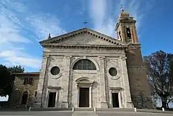 - Duomo di Montalcino (Concattedrale del Santissimo Salvatore), seit 1986 Konkathedrale des Erzbistums Siena-Colle di Val d’Elsa-Montalcino, befindet sich im historischen Ortskern. Entstand aus der Pieve di San Salvatore, einer Pieve, die um das Jahr 1000 entstand und 1462 von Pius II. zur Kathedrale ernannt wurde. Die Kirche wurde von 1818 bis 1832 fast vollständig erneuert und im neoklassischen Stil angelegt, die Baupläne wurden von Agostino Fantastici angefertigt. Der Campanile stammt aus dem 18. Jahrhundert. Im Inneren befinden sich die Kunstwerke Immacolata Concezione con Gesù e Dio Padre (1588 entstanden) und San Giovanni Battista nel deserto von Francesco Vanni, San Michele Arcangelo che scaccia gli angeli ribelli dal Paradiso aus dem Umfeld des Domenico Beccafumi sowie das Gemälde Madonna Assunta tra angeli con i Santi Ippolito Vescovo e Cipriano Martire von Francesco Nasini, 1647 entstanden.[11]