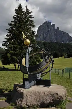 - Die Sonnenuhr: eine sphärische Äquatorial-Sonnenuhr, die nicht nur für St. Christina, sondern auch noch 60 weitere Städte die wahre Ortszeit (WOZ) und die mitteleuropäische Zeit (MEZ) anzeigt.