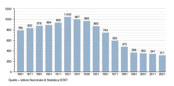 Die Gemeinde hatte in den letzten 100 Jahren, beginnend 1921, einen Bevölkerungsrückgang von 70 % zu verkraften.