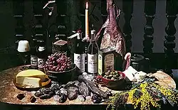Fleisch spielt eine zentrale Rolle und kann durchaus deftig sein. Besonders beliebt ist gegrilltes Lamm. Eine beliebte Spezialität ist auch das Njegusi-Schnitzel: Es wird mit Kajmak bestrichen, mit Schafskäse und Schinken belegt; dann wird es samt Füllung eingerollt, mit Olivenöl bestrichen und durch verquirlte Eier gezogen und gebraten.