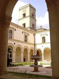 - Die Benediktinerabtei San Michele Arcangelo (Abtei z. hl. Erzengel Michael) wurde vom Grafen Humfried von Montescaglioso gegründet, ebenfalls von seinem Sohn Radulph und König Roger II. von Sizilien gefördert, sowie bereits von Gregor VII. in den päpstlichen Schutz genommen, was Paschalis II. und Alexander III. (1174) bestätigten. Da das Kloster eine Fälscherhochburg war, können keine zuverlässigen Daten für die Gründung genannt werden. Jedenfalls behielt das Kloster seinen Rang als exemte Abtei bis zum Jahr 1910. Die Klosteranlage besitzt 365 Zimmer und ist unterteilt durch zwei Innenhöfe und zwei Brunnen. Kern der Abtei sind der östliche der beiden Kreuzgänge (mit Blick auf den Campanile) und die Kirche, die Ende des 14. Jahrhunderts wieder aufgebaut wurde. Die Kolonnaden und Fresken sind von lukanischen Künstlern. Seit 1980 wird sie immer wieder saniert und bleibt für Besucher geschlossen. Bibliothek und Räume wurden saniert und neu eingerichtet. Im Jahre 2005 wurden diese Räume zur Besichtigung freigegeben.[2]