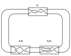 Alternativ werden Montesinos-Verschlingungen klassifiziert durch die Quotienten der Knotengruppe nach dem von den Meridianen erzeugten Normalteiler.