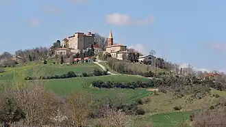 ![]() Blick auf Montgey mit Schloss und Kirche | ||